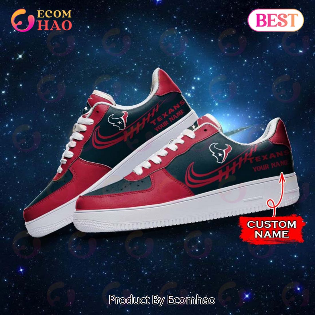 NFL Houston Texans Air Force 1 Sneaker Custom Name Show your team pride every time you step out in style with the Houston Texans Air Force 1 Custom Name Sneaker! These unique products let you customize your own exclusive pair of white leather Air Force 1s with a bold, black print of the Houston Texans...