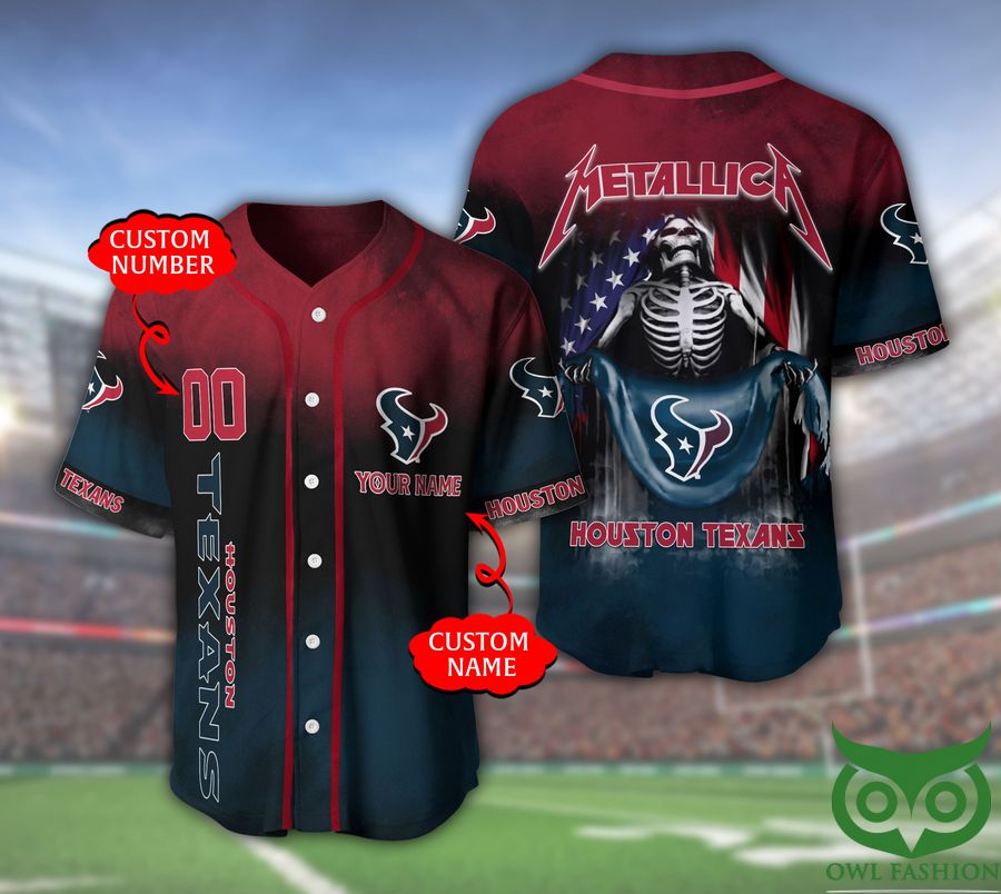 NFL Houston Texans Custom Name Number Skull Baseball Jersey V3 Product Features This Houston Texans Baseball Jersey is not only sturdy and durable for long hours of exercising, but also breathable and moisture-wicking to keep you snug all day. Breathable fabric: This Baseball Jersey is made of woven fabric, with moisture-wicking features and a comfortable...