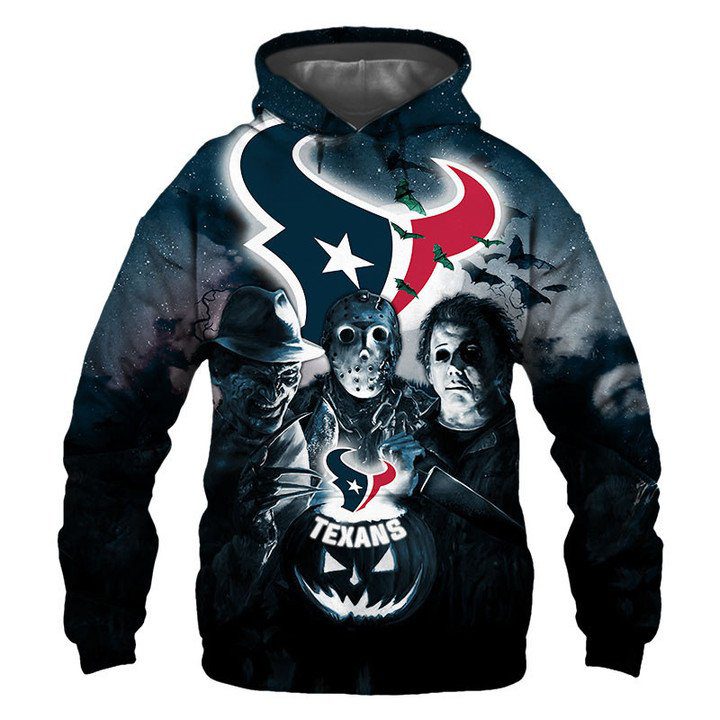 NFL Houston Texans Halloween Night Pullover Hoodie Product Features Along with its Houston Texans graphics, this cozy pullover hoodie features super-soft midweight material. Material: 95% polyester + 5% spandex. The fabric is durable and resistant to wrinkles, shrinking and mildew. Hood with drawstrings. Long sleeve. Front pouch pocket. Midweight hoodie suitable for moderate temperatures. Features...