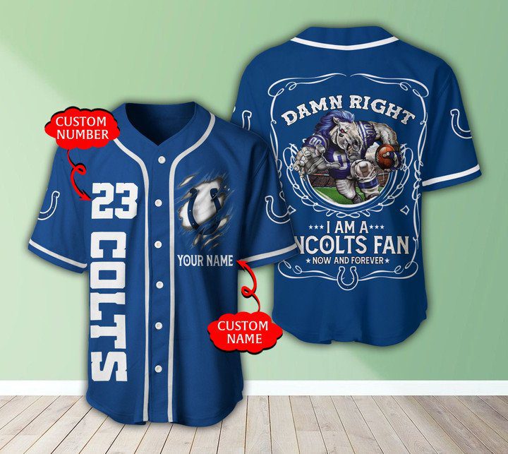 NFL Indianapolis Colts Custom Name Number Blue Baseball Jersey Product Features This Indianapolis Colts Baseball Jersey is not only sturdy and durable for long hours of exercising, but also breathable and moisture-wicking to keep you snug all day. Breathable fabric: This Baseball Jersey is made of woven fabric, with moisture-wicking features and a comfortable feel...