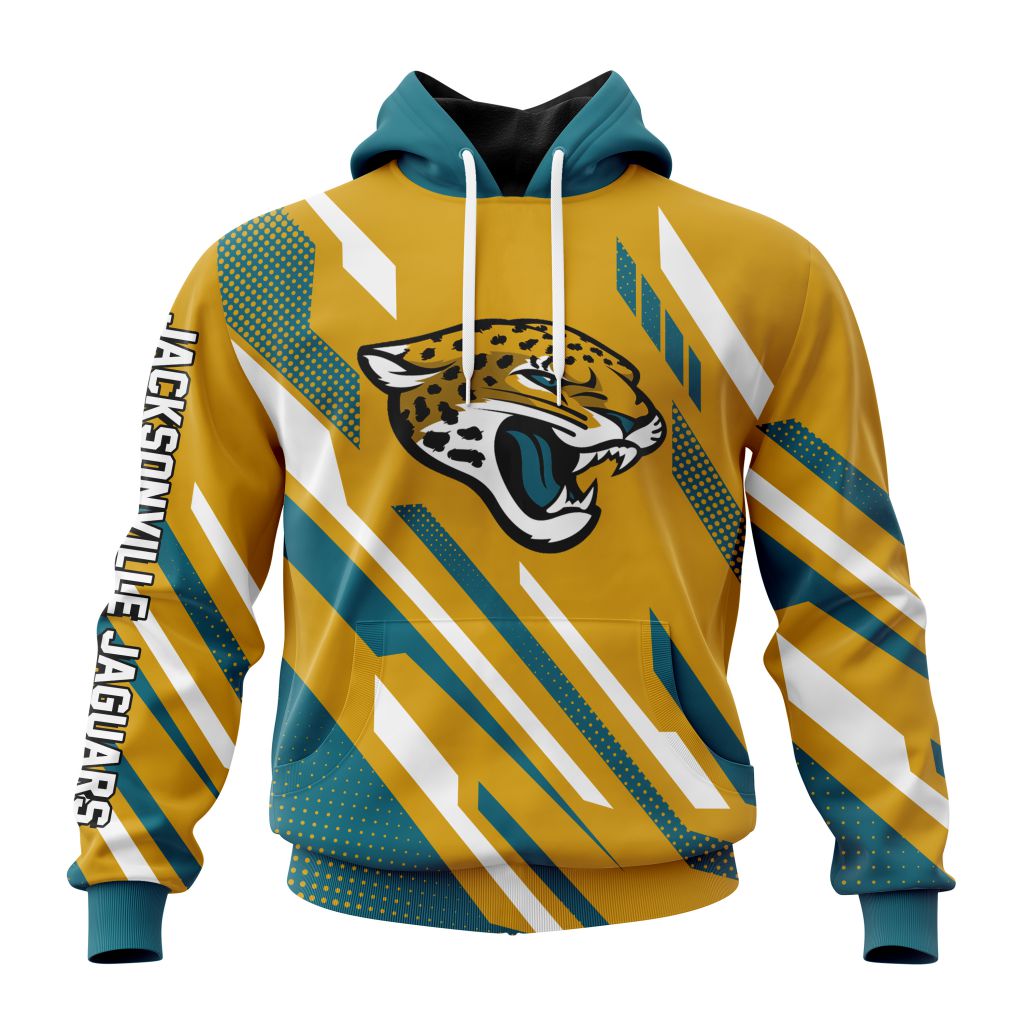 NFL Jacksonville Jaguars Custom Name Number MotoCross Concept Pullover Hoodie Product Features Along with its Jacksonville Jaguars graphics, this cozy pullover hoodie features super-soft midweight material. Material: 95% polyester + 5% spandex. The fabric is durable and resistant to wrinkles, shrinking and mildew. Hood with drawstrings. Long sleeve. Front pouch pocket. Midweight hoodie suitable for...
