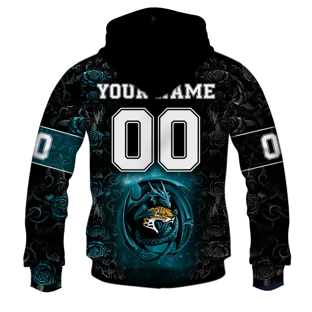 NFL Jacksonville Jaguars Custom Name Number Rose Dragon Pullover Hoodie