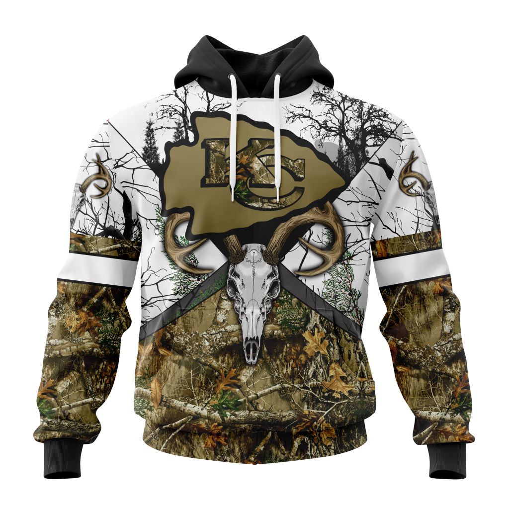 NFL Kansas City Chiefs Custom Name Number Deer Skull And Forest Pullover Hoodie Product Features Along with its Kansas City Chiefs graphics, this cozy pullover hoodie features super-soft midweight material. Material: 95% polyester + 5% spandex. The fabric is durable and resistant to wrinkles, shrinking and mildew. Hood with drawstrings. Long sleeve. Front pouch pocket....