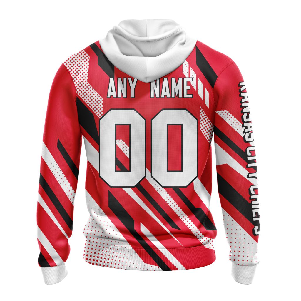 NFL Kansas City Chiefs Custom Name Number MotoCross Concept Pullover Hoodie Product Features Along with its Kansas City Chiefs graphics, this cozy pullover hoodie features super-soft midweight material. Material: 95% polyester + 5% spandex. The fabric is durable and resistant to wrinkles, shrinking and mildew. Hood with drawstrings. Long sleeve. Front pouch pocket. Midweight hoodie...