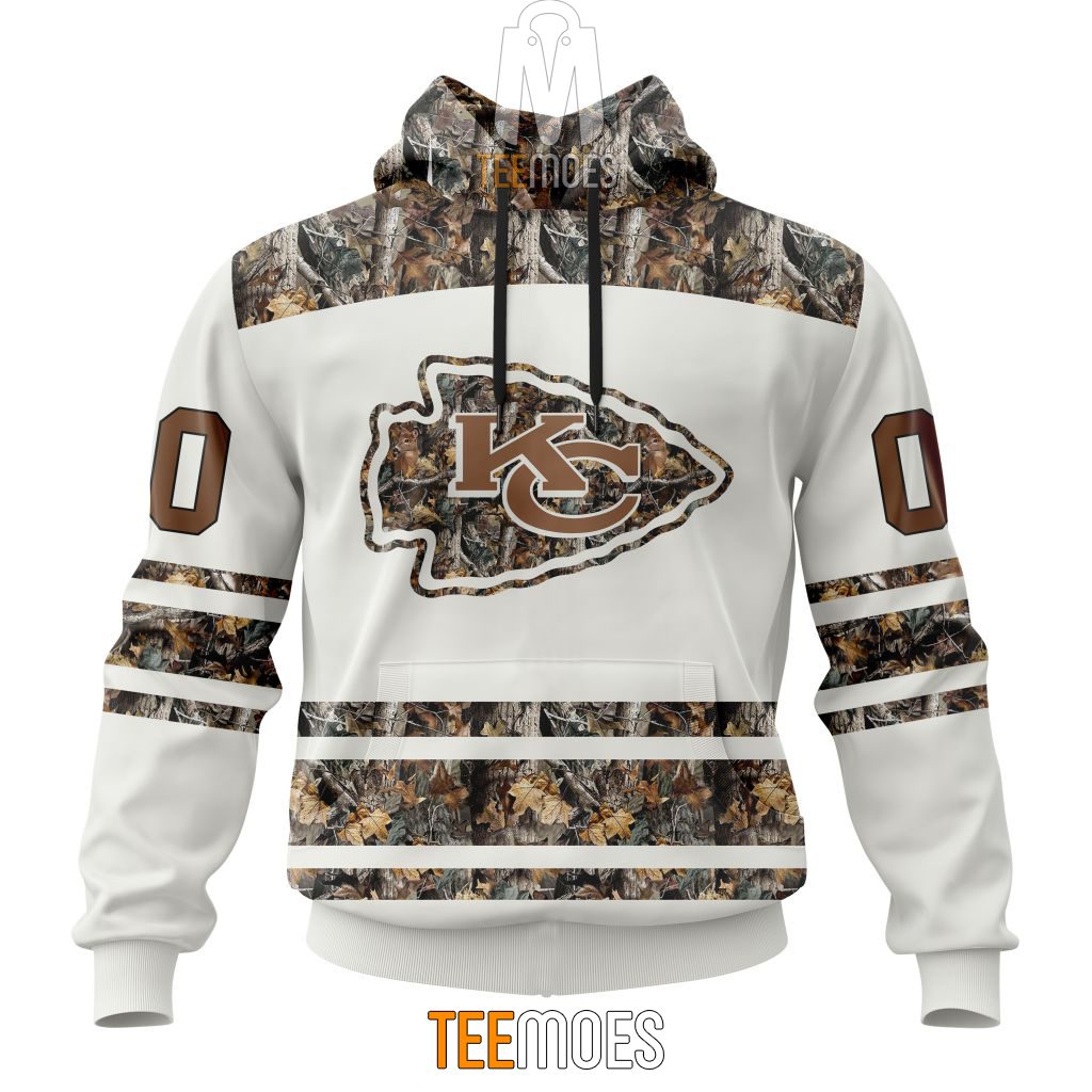 NFL Kansas City Chiefs Custom Name Number White Camo Hunting Pullover Hoodie Product Features