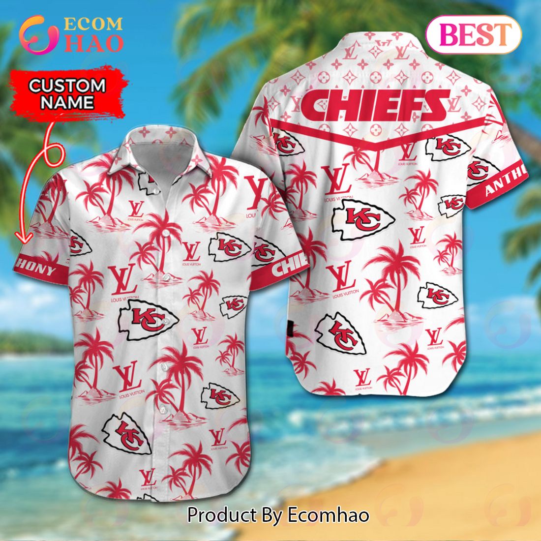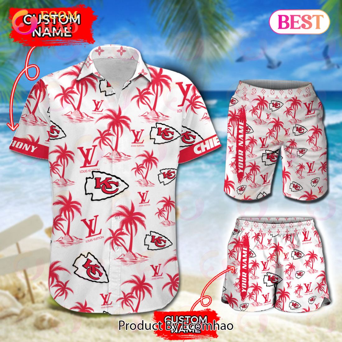 NFL Kansas City Chiefs Louis Vuitton Logo Pattern Hawaiian Shirt & Shorts Information: