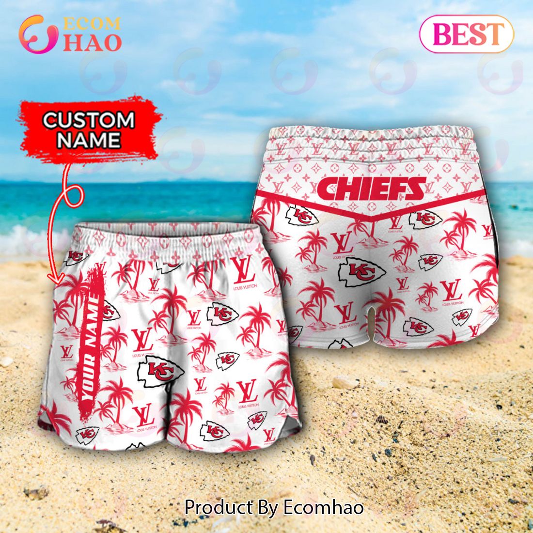 NFL Kansas City Chiefs Louis Vuitton Logo Pattern Hawaiian Shirt & Shorts This stylish and comfortable NFL Kansas City Chiefs Louis Vuitton Logo Pattern Hawaiian Shirt & Shorts set is perfect for Chiefs fans. The shirt is a relaxed fit with a classic creamy white or yellow traditional Hawaiian pattern featuring the Chiefs bold logo....