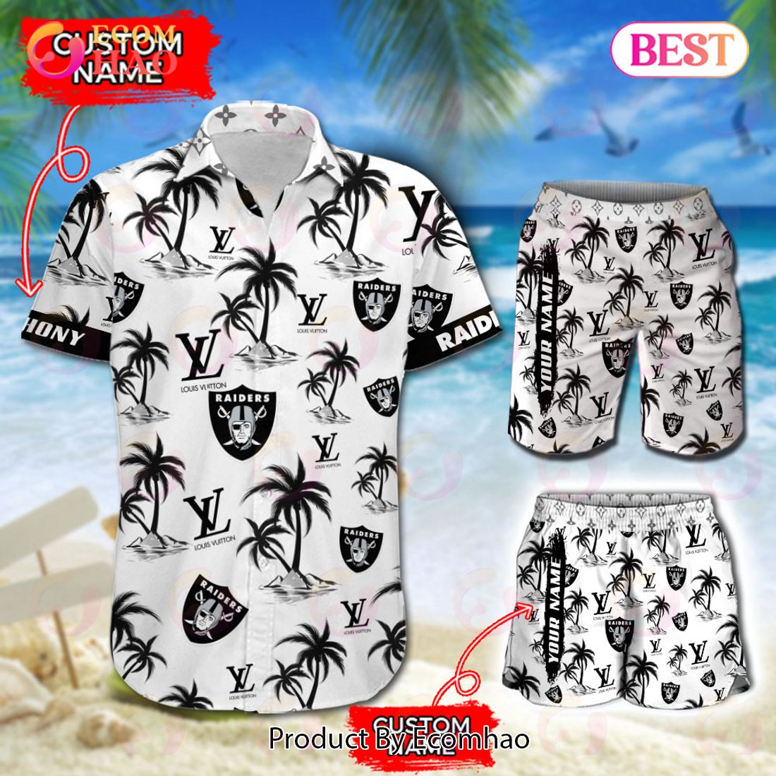 NFL Las Vegas Raiders Louis Vuitton Logo Pattern Hawaiian Shirt & Shorts NFL Las Vegas Raiders Louis Vuitton Logo Pattern Hawaiian Shirt & Shorts Information: KEY FEATURES: Summer Short Sleeve Hawaiian Beach Shirt. Casual/Dating/Sun Beach Party/Hawaiian/suitable for a variety of occasions. Suitable for special occasions such as Christmas, birthday, celebration, housewarming gift. Hawaiian Shirt 100%...