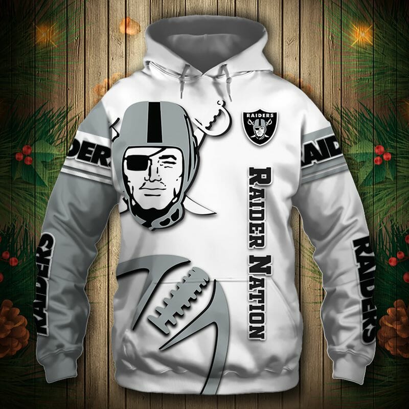 NFL Las Vegas Raiders White Grey Pullover Hoodie