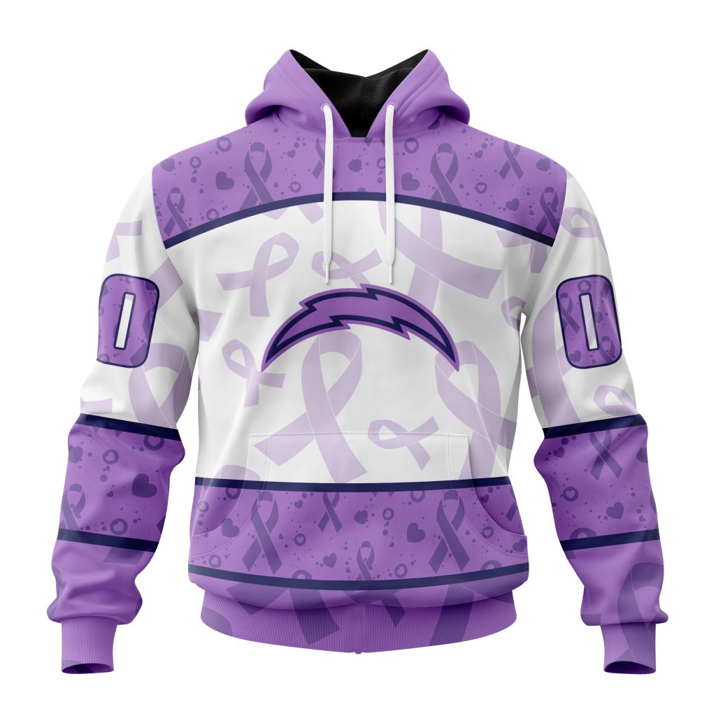 NFL Los Angeles Chargers Custom Name Number Fight Cancer Pullover Hoodie Product Features Along with its Los Angeles Chargers graphics, this cozy pullover hoodie features super-soft midweight material. Material: 95% polyester + 5% spandex. The fabric is durable and resistant to wrinkles, shrinking and mildew. Hood with drawstrings. Long sleeve. Front pouch pocket. Midweight hoodie...