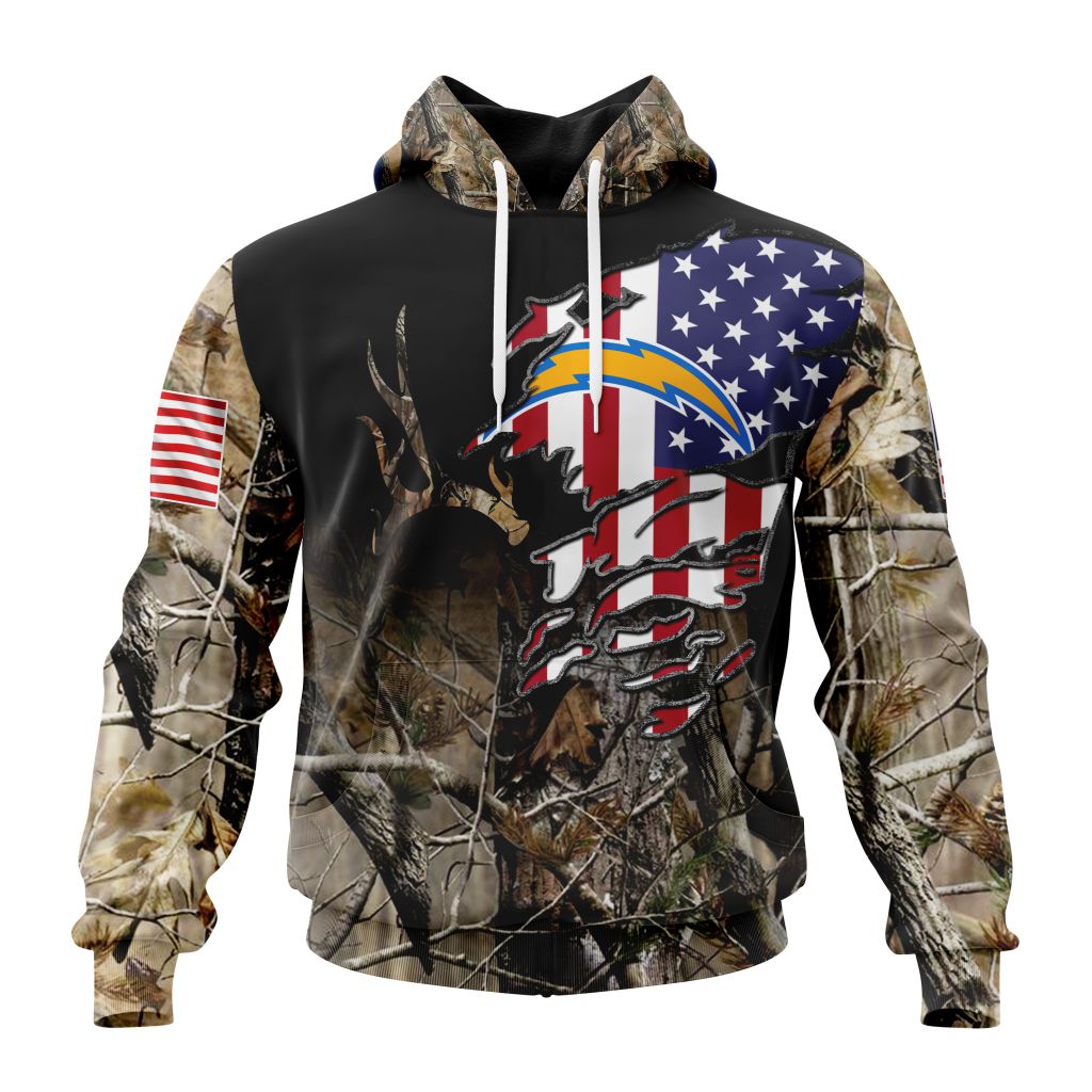 NFL Los Angeles Chargers Custom Name Number Special Camo Realtree Pullover Hoodie Product Features Along with its Los Angeles Chargers graphics, this cozy pullover hoodie features super-soft midweight material. Material: 95% polyester + 5% spandex. The fabric is durable and resistant to wrinkles, shrinking and mildew. Hood with drawstrings. Long sleeve. Front pouch pocket. Midweight...