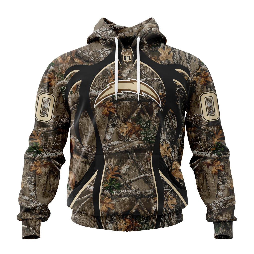 NFL Los Angeles Chargers Custom Name Number Special Hunting Camo Pullover Hoodie Product Features Along with its Los Angeles Chargers graphics, this cozy pullover hoodie features super-soft midweight material. Material: 95% polyester + 5% spandex. The fabric is durable and resistant to wrinkles, shrinking and mildew. Hood with drawstrings. Long sleeve. Front pouch pocket. Midweight...