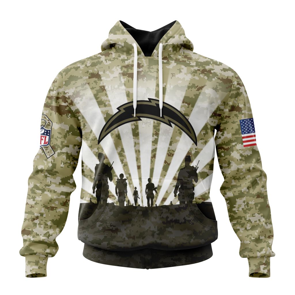 NFL Los Angeles Chargers Custom Name Number Veterans And Families Pullover Hoodie