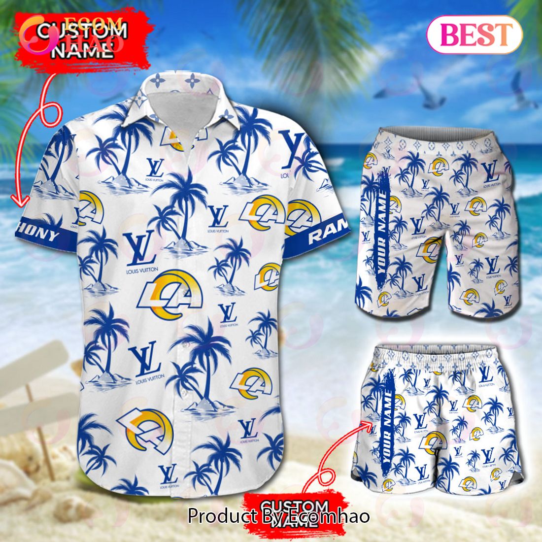 NFL Los Angeles Rams Louis Vuitton Logo Pattern Hawaiian Shirt & Shorts NFL Los Angeles Rams Louis Vuitton Logo Pattern Hawaiian Shirt & Shorts Information: KEY FEATURES: Summer Short Sleeve Hawaiian Beach Shirt. Casual/Dating/Sun Beach Party/Hawaiian/suitable for a variety of occasions. Suitable for special occasions such as Christmas, birthday, celebration, housewarming gift. Hawaiian Shirt 100%...