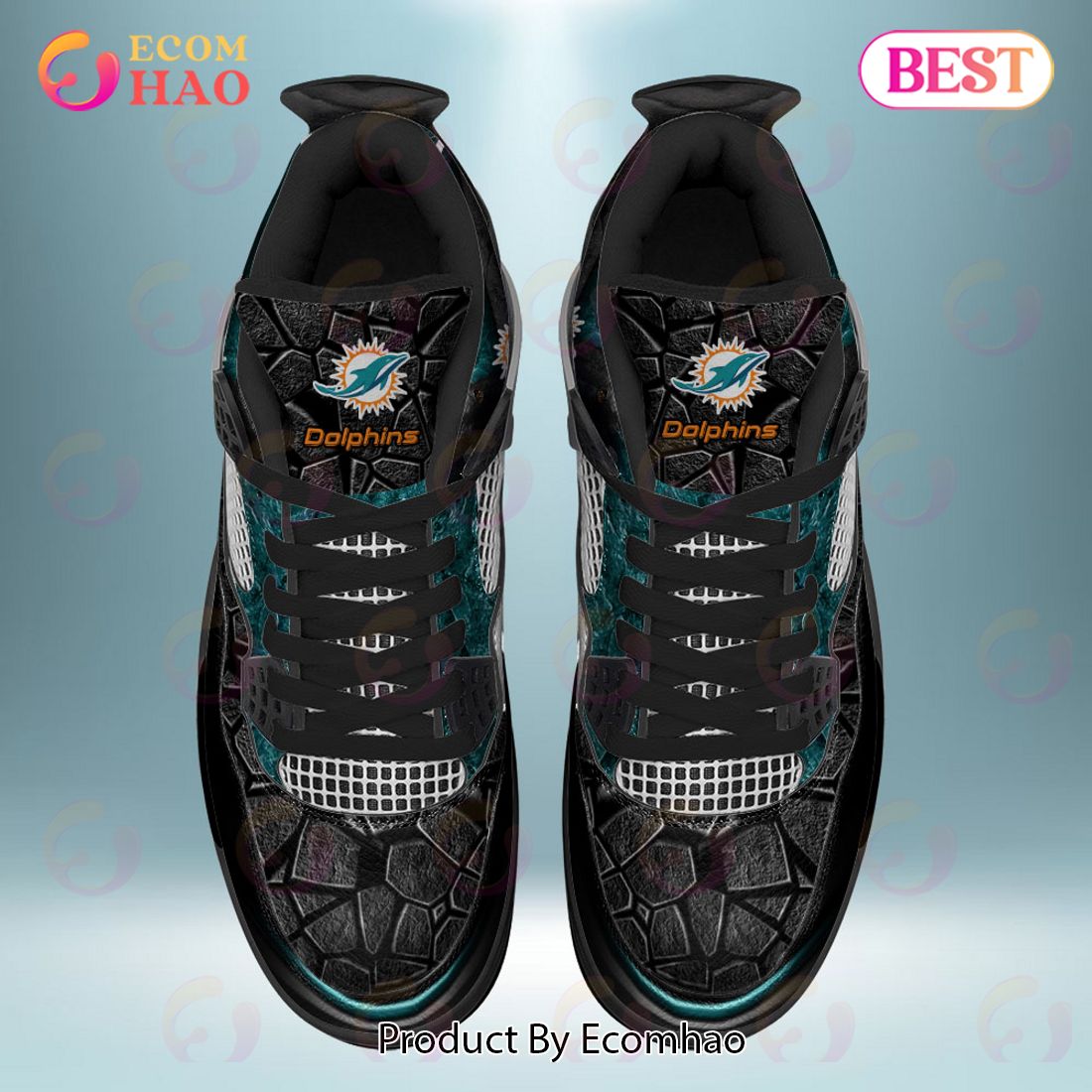 NFL Miami Dolphins Air Jordan 4 Sneaker Custom Name The NFL Miami Dolphins Air Jordan 4 Sneaker Custom Name is an ideal shoe for those looking to make a statement. This stylish and fashionable sneaker features the Miami Dolphins official team colors, a combination of navy, teal, and orange, with a custom name feature on...