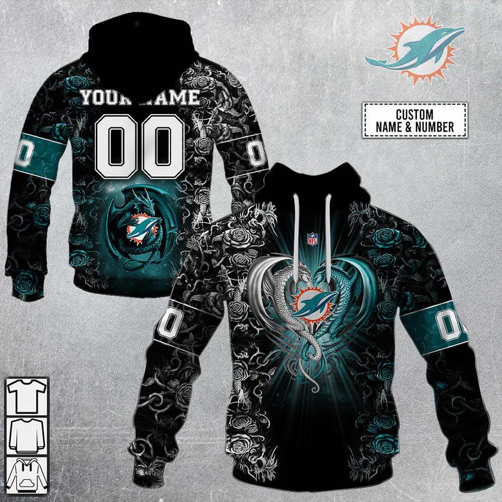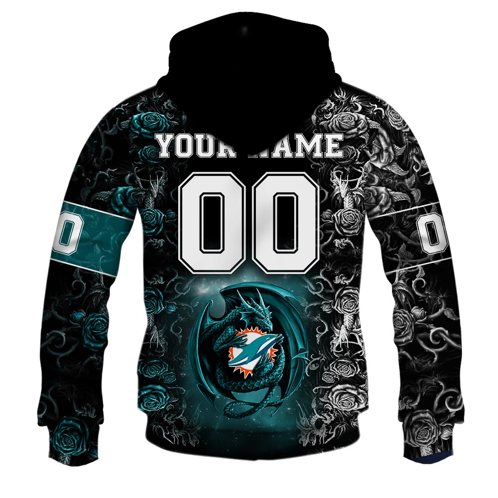 NFL Miami Dolphins Custom Name Number Rose Dragon Pullover Hoodie