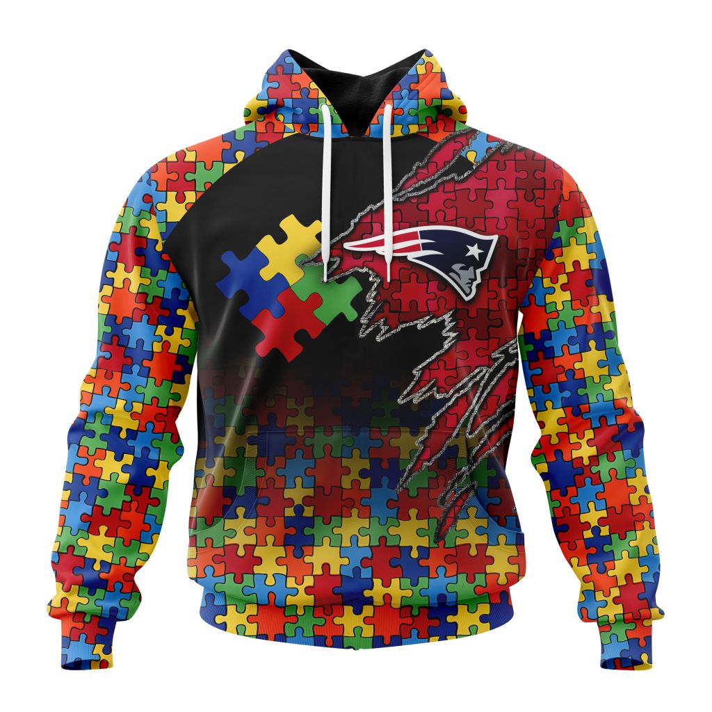 NFL New England Patriots Custom Name Number Autism Awareness Design Pullover Hoodie