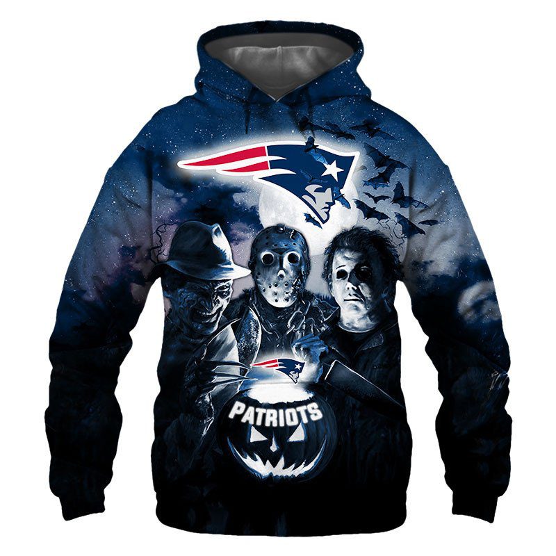 NFL New England Patriots Halloween Horror Night Pullover Hoodie Product Features Along with its New England Patriots graphics, this cozy pullover hoodie features super-soft midweight material. Material: 95% polyester + 5% spandex. The fabric is durable and resistant to wrinkles, shrinking and mildew. Hood with drawstrings. Long sleeve. Front pouch pocket. Midweight hoodie suitable for...