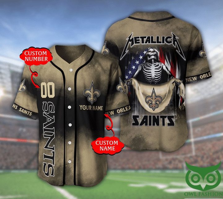 NFL New Orleans Saints Custom Name Number Metallica Baseball Jersey Product Features This New Orleans Saints Baseball Jersey is not only sturdy and durable for long hours of exercising, but also breathable and moisture-wicking to keep you snug all day. Breathable fabric: This Baseball Jersey is made of woven fabric, with moisture-wicking features and a...