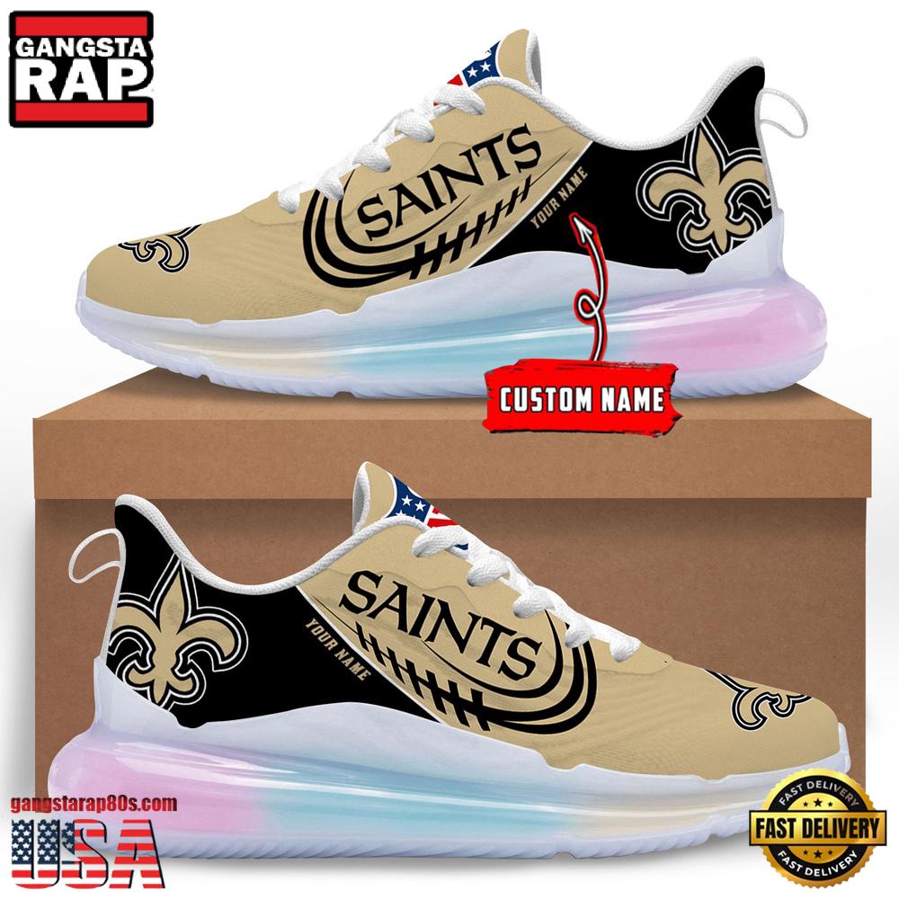Featuring a stunning rainbow color palette, these custom-designed sneakers are sure to turn heads both in the stadium and on the streets. The vibrant hues combined with the iconic silhouette create a bold statement that embodies the lively spirit of the New Orleans Saints fan base. The infusion of atmospheric design elements gives these sneakers an edge, ensuring you stay on-trend with the latest in sports fashion.
