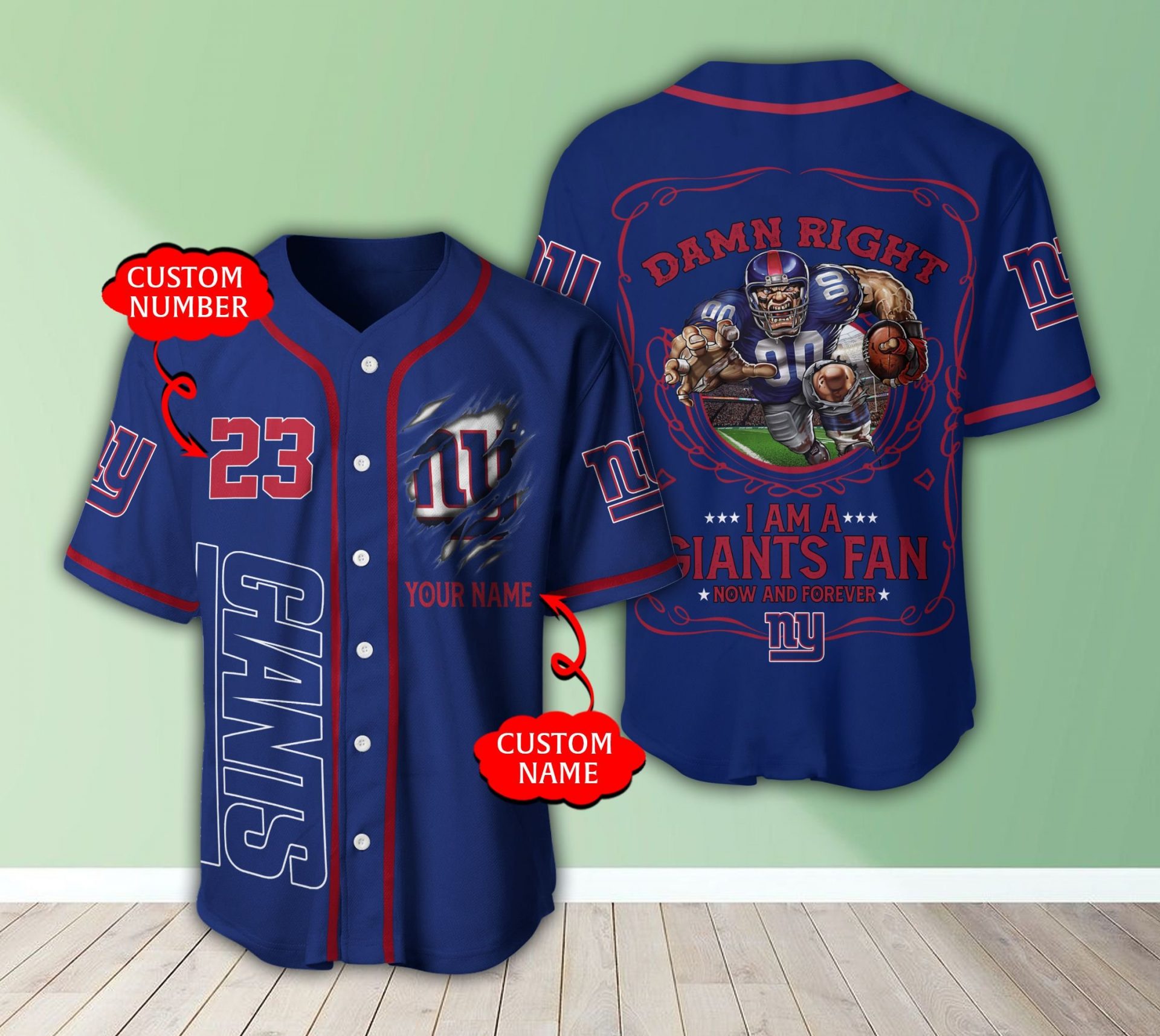 NFL New York Giants Custom Name Number Blue Baseball Jersey Product Features This New York Giants Baseball Jersey is not only sturdy and durable for long hours of exercising, but also breathable and moisture-wicking to keep you snug all day. Breathable fabric: This Baseball Jersey is made of woven fabric, with moisture-wicking features and a...