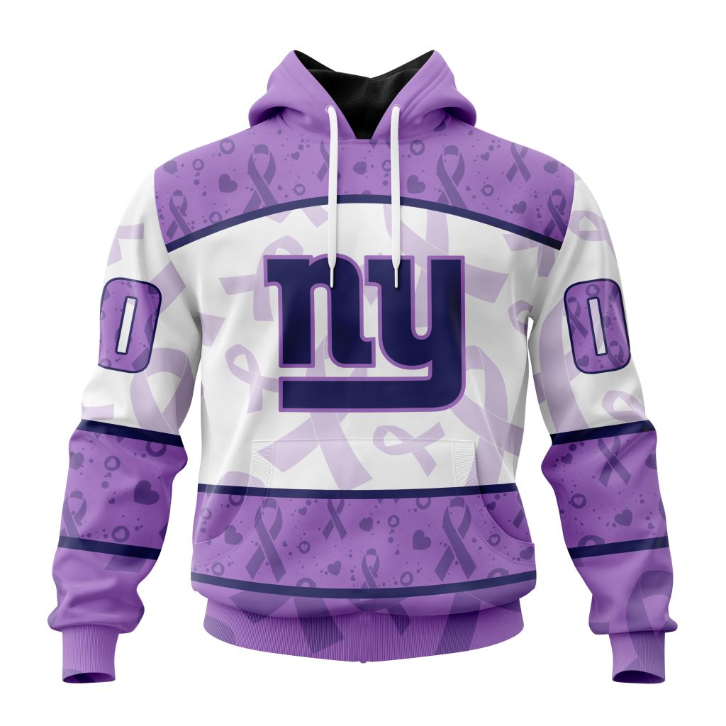 NFL New York Giants Custom Name Number Fight Cancer Pullover Hoodie Product Features Along with its New York Giants graphics, this cozy pullover hoodie features super-soft midweight material. Material: 95% polyester + 5% spandex. The fabric is durable and resistant to wrinkles, shrinking and mildew. Hood with drawstrings. Long sleeve. Front pouch pocket. Midweight hoodie...
