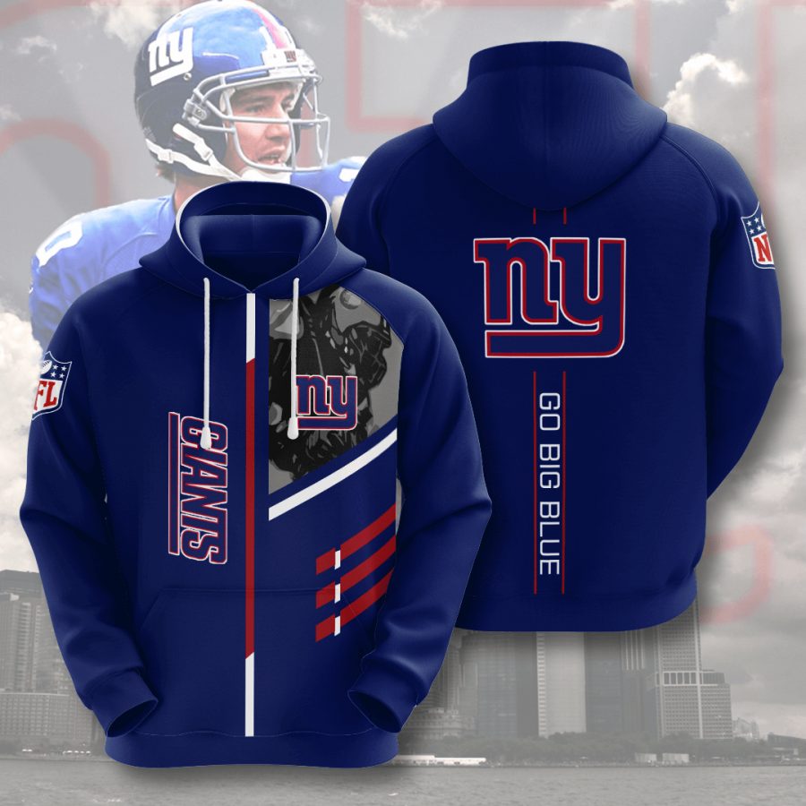 NFL New York Giants Go Big Blue Pullover Hoodie Product Features Along with its New York Giants graphics, this cozy pullover hoodie features super-soft midweight material. Material: 95% polyester + 5% spandex. The fabric is durable and resistant to wrinkles, shrinking and mildew. Hood with drawstrings. Long sleeve. Front pouch pocket. Midweight hoodie suitable for...