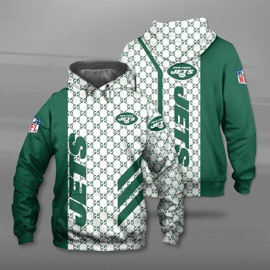 NFL New York Jets White Green Pullover Hoodie V2 Product Features Along with its New York Jets graphics, this cozy pullover hoodie features super-soft midweight material. Material: 95% polyester + 5% spandex. The fabric is durable and resistant to wrinkles, shrinking and mildew. Hood with drawstrings. Long sleeve. Front pouch pocket. Midweight hoodie suitable for...