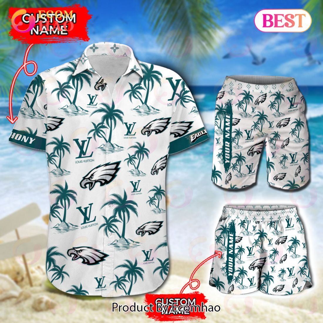 NFL Philadelphia Eagles Louis Vuitton Logo Pattern Hawaiian Shirt & Shorts Information: