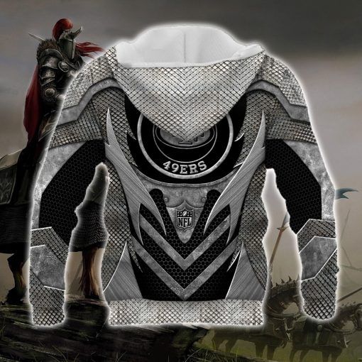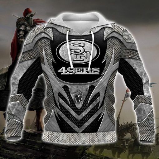 NFL San Francisco 49ers Knight Edition Pullover Hoodie Product Features Along with its San Francisco 49ers graphics, this cozy pullover hoodie features super-soft midweight material. Material: 95% polyester + 5% spandex. The fabric is durable and resistant to wrinkles, shrinking and mildew. Hood with drawstrings. Long sleeve. Front pouch pocket. Midweight hoodie suitable for moderate...