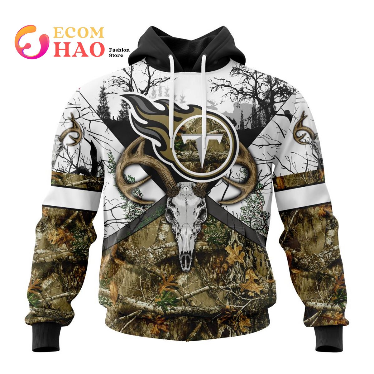 NFL Tennessee Titans Custom Name Number Deer Skull Pullover Hoodie Product Features Along with its Tennessee Titans graphics, this cozy pullover hoodie features super-soft midweight material. Material: 95% polyester + 5% spandex. The fabric is durable and resistant to wrinkles, shrinking and mildew. Hood with drawstrings. Long sleeve. Front pouch pocket. Midweight hoodie suitable for...