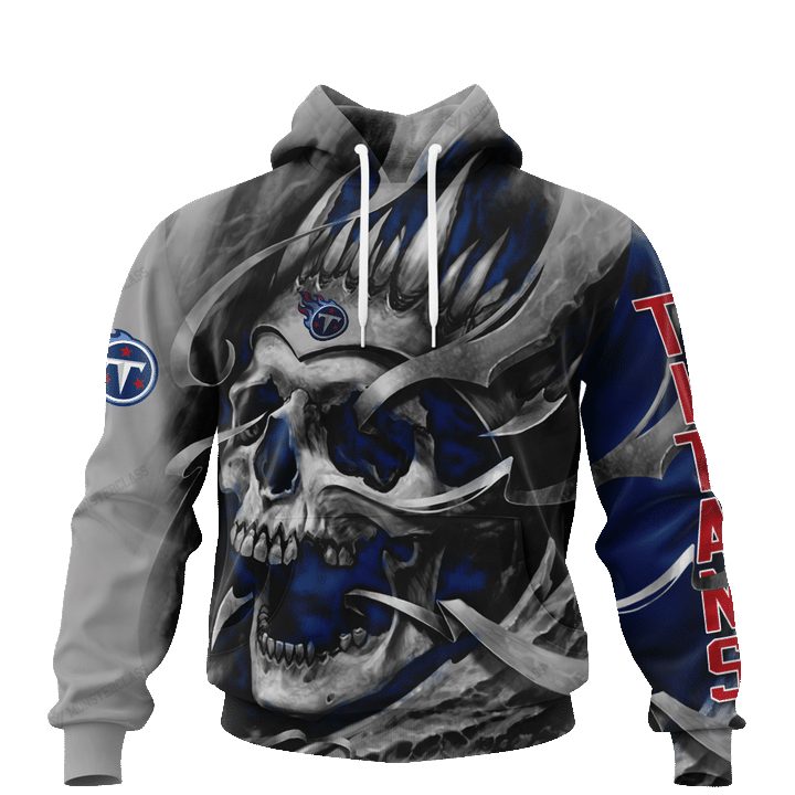 NFL Tennessee Titans Custom Name Number Skull Grey Pullover Hoodie Product Features Along with its Tennessee Titans graphics, this cozy pullover hoodie features super-soft midweight material. Material: 95% polyester + 5% spandex. The fabric is durable and resistant to wrinkles, shrinking and mildew. Hood with drawstrings. Long sleeve. Front pouch pocket. Midweight hoodie suitable for...