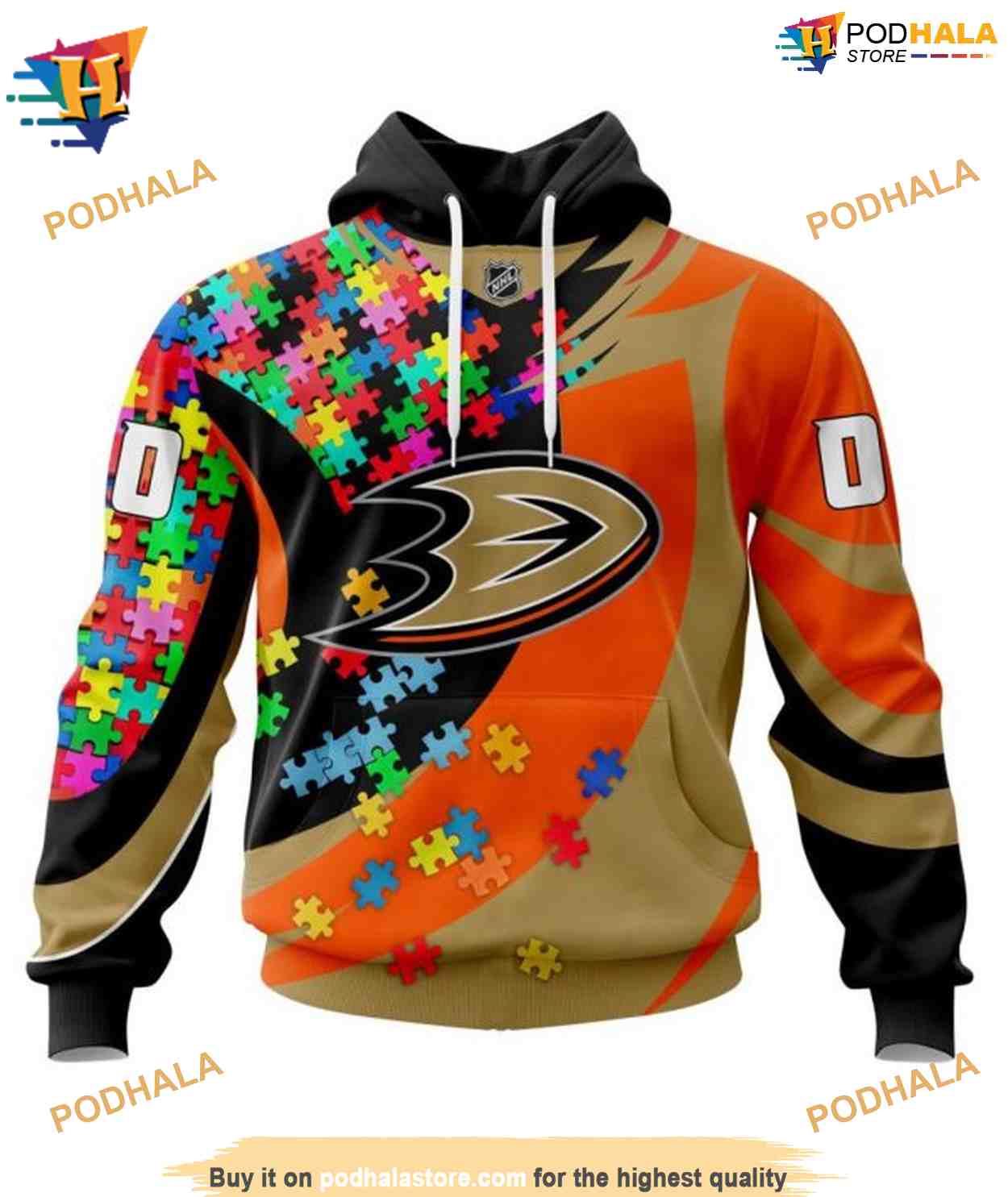NHL Autism Awareness Personalized Ducks Hockey Apparel Hoodie 3D