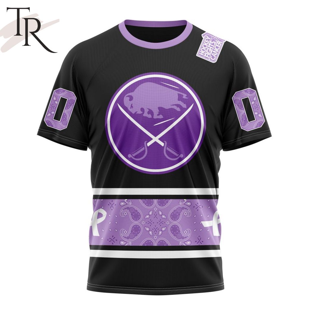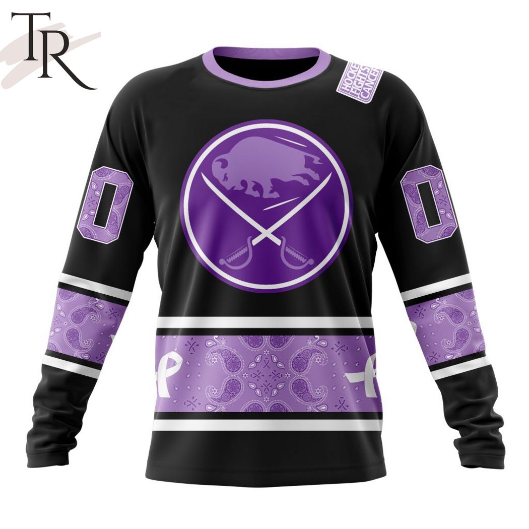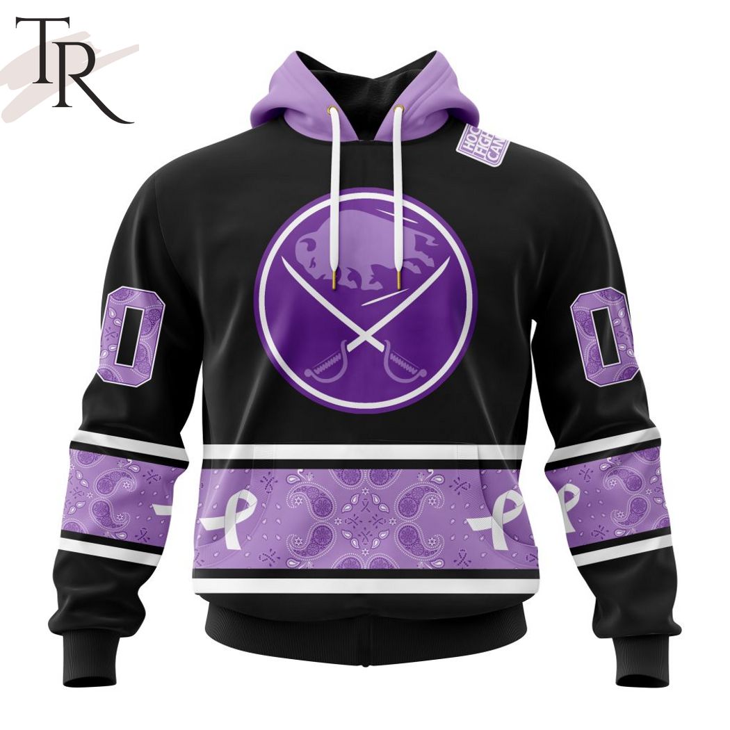 NHL Buffalo Sabres Special Black And Lavender Hockey Fight Cancer Design Personalized Hoodie