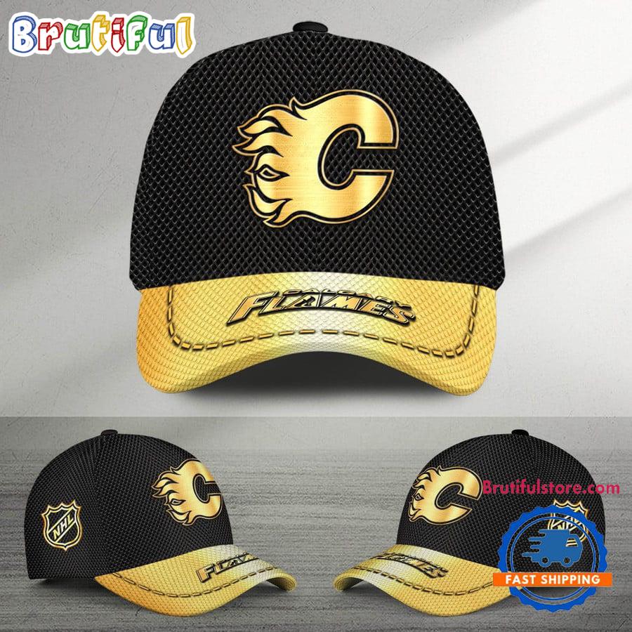 NHL Calgary Flames Black And Gold Design Cap Hats