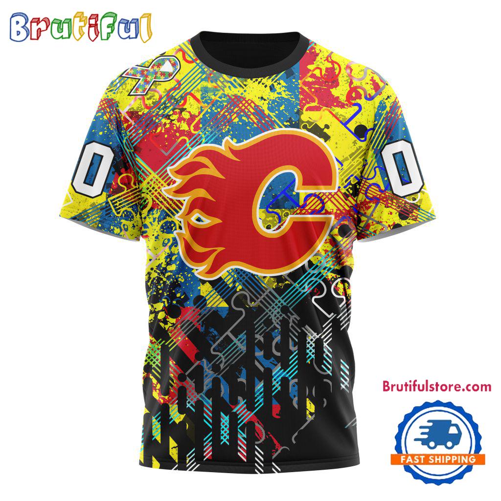 NHL Calgary Flames Hockey Logo Team Autism Awareness Design TShirt, Sweatshirt, Hoodie