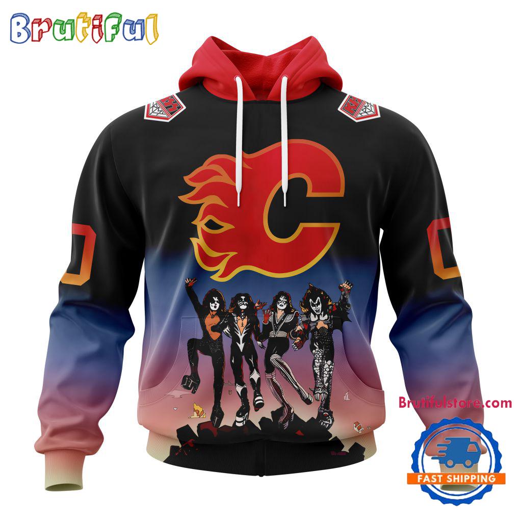 NHL Calgary Flames X KISS Band Special Hockey Team Music Design Unisex Hoodie