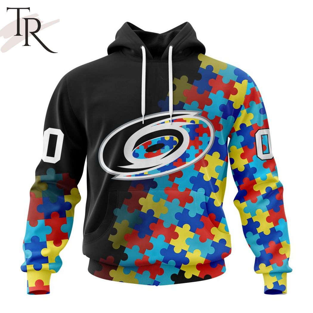 NHL Carolina Hurricanes Special Black Autism Awareness Design Hoodie, Zipper Hoodie, Fleece Hoodie, Long Sleeve Shirt, T-Shirt