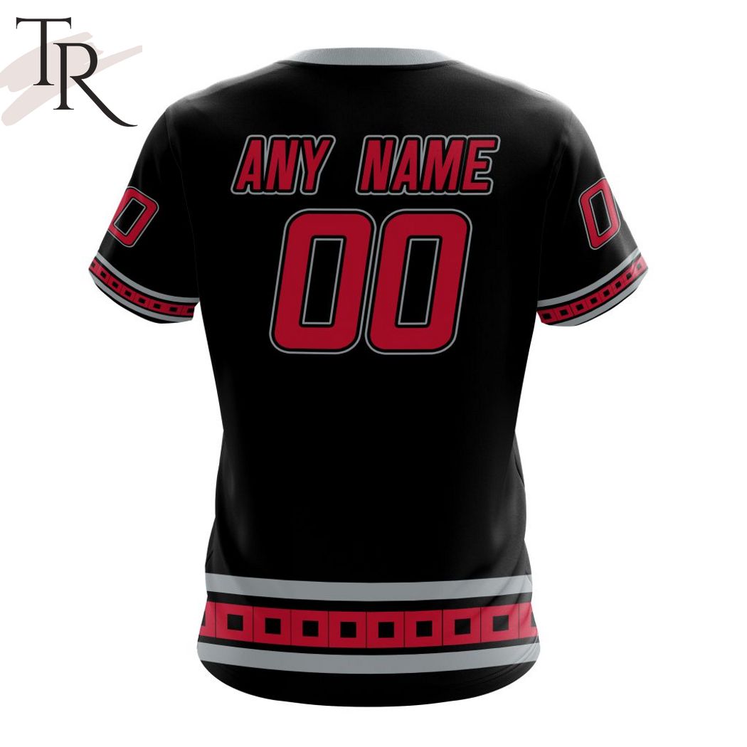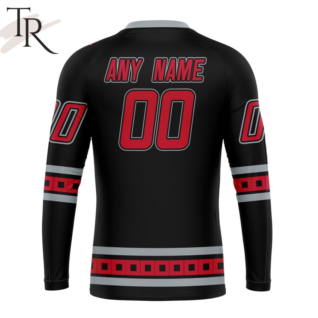 The NHL Carolina Hurricanes Special Blackout Design Hoodie is the perfect addition to any fan’s wardrobe. Made with a sleek all-black design, this hoodie features the iconic Hurricanes logo in bold red and white embroidery on the front. It also has a drawstring hood and zippered front to keep you warm and cozy during those chilly hockey games. The hoodie is made of high-quality materials that are both comfortable and durable, ensuring that it will last for seasons to come. Whether you’re watching the game from your couch or cheering on the team at the arena, this hoodie is a must-have for any die-hard Hurricanes fan. It’s also a great way to show your support for the team and stand out from the crowd with the unique blackout design. Don’t miss your chance to add this NHL Carolina Hurricanes Special Blackout Design Hoodie to your collection and show off your team pride in style.