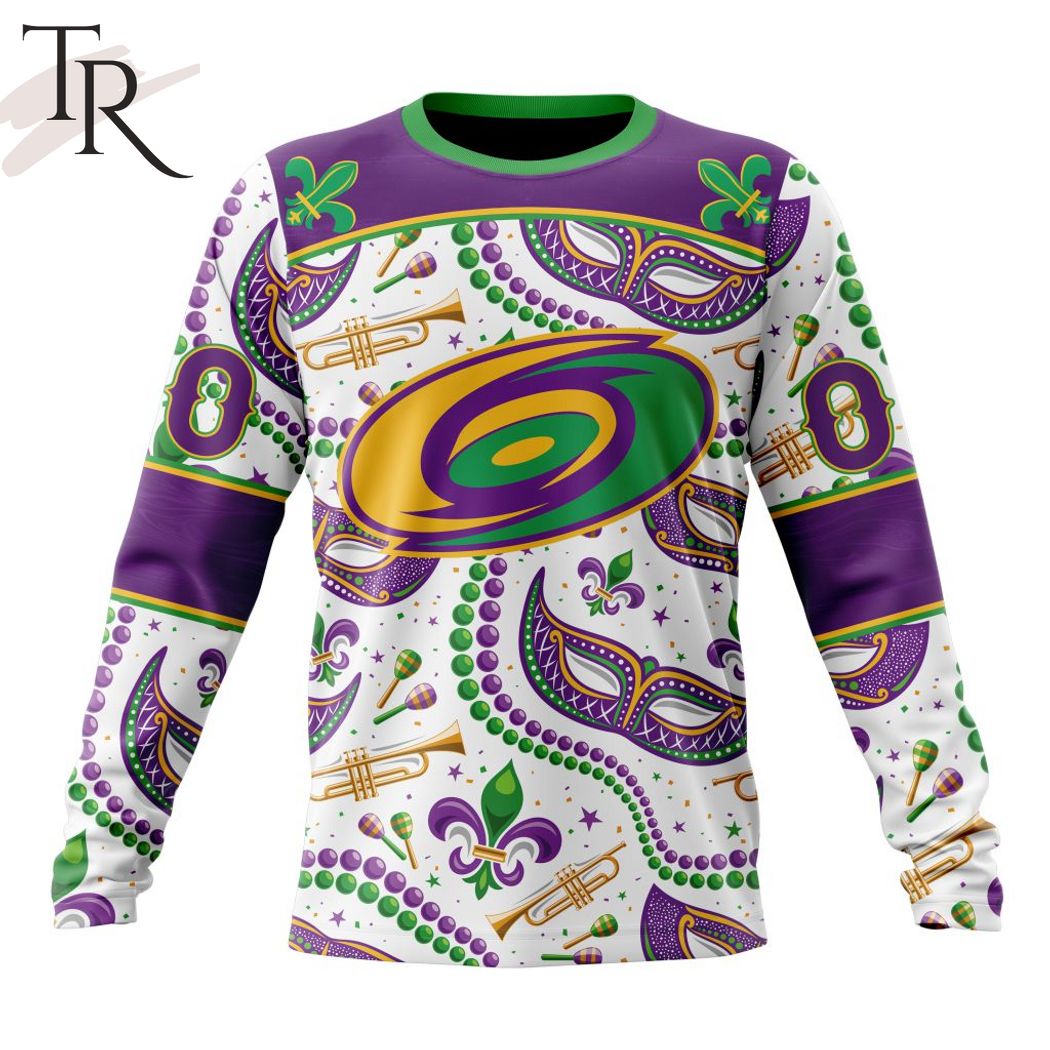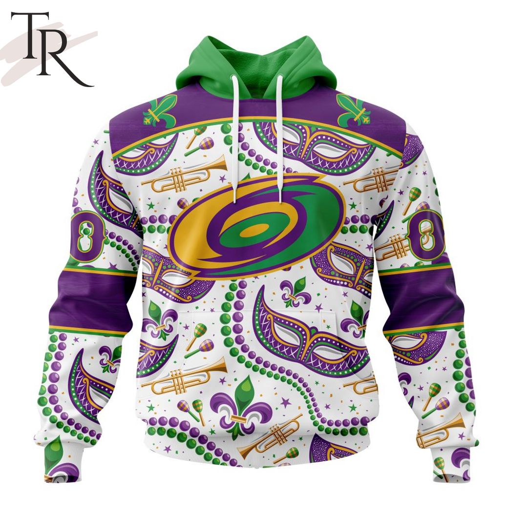NHL Carolina Hurricanes Special Mardi Gras Design Hoodie, Zipper Hoodie, Fleece Hoodie, Long Sleeve Shirt, T-Shirt
