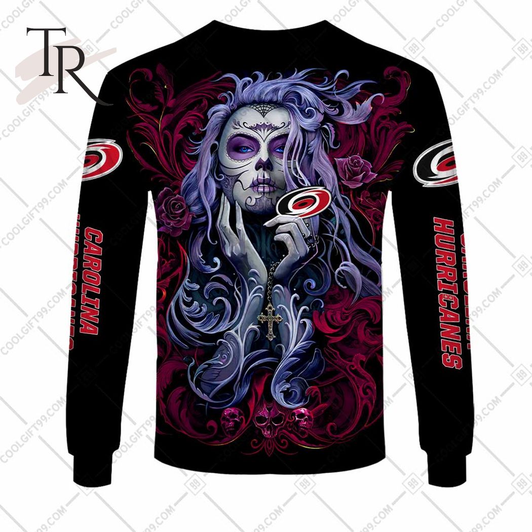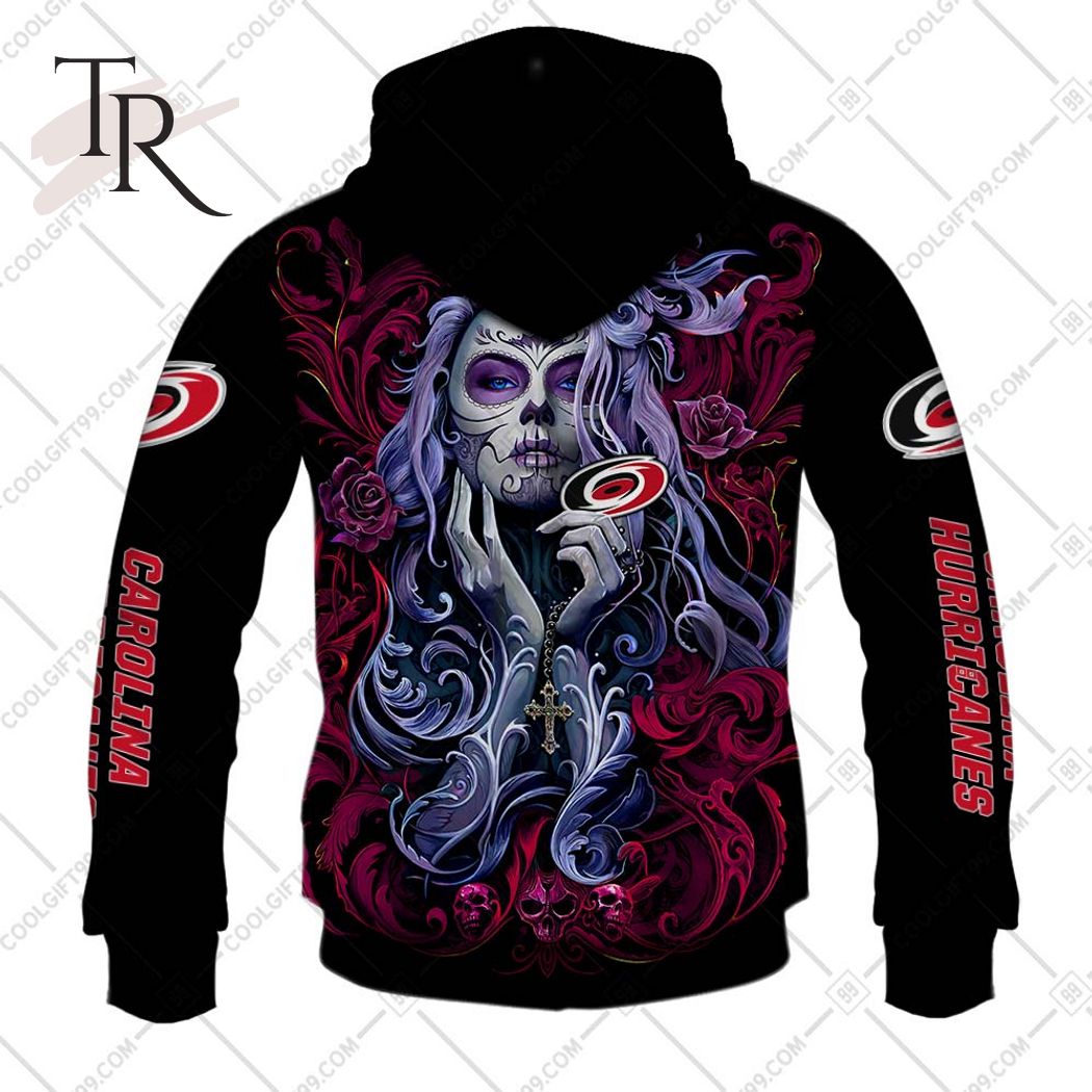 The NHL Carolina Hurricanes Tattoo Girl Artwork 2023 unisex hoodie and t-shirt feature a captivating design that combines the Carolina Hurricanes team logo with a tattooed girl artwork. The artwork creates a unique and edgy look, representing the team with a bold and artistic flair. Crafted from high-quality materials, the hoodie and t-shirt offer both comfort and durability. Designed in a unisex style, they are suitable for fans of all genders who want to showcase their support for the Carolina Hurricanes in a distinctive and stylish way.