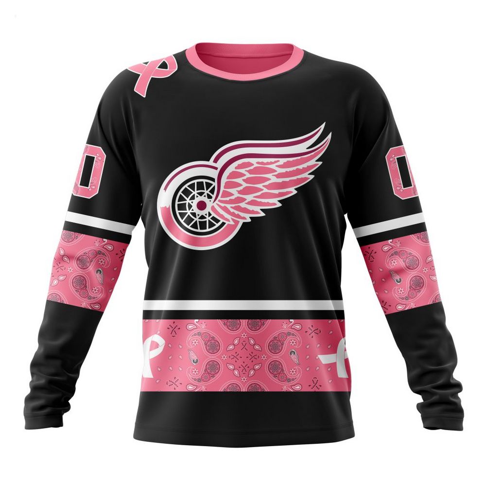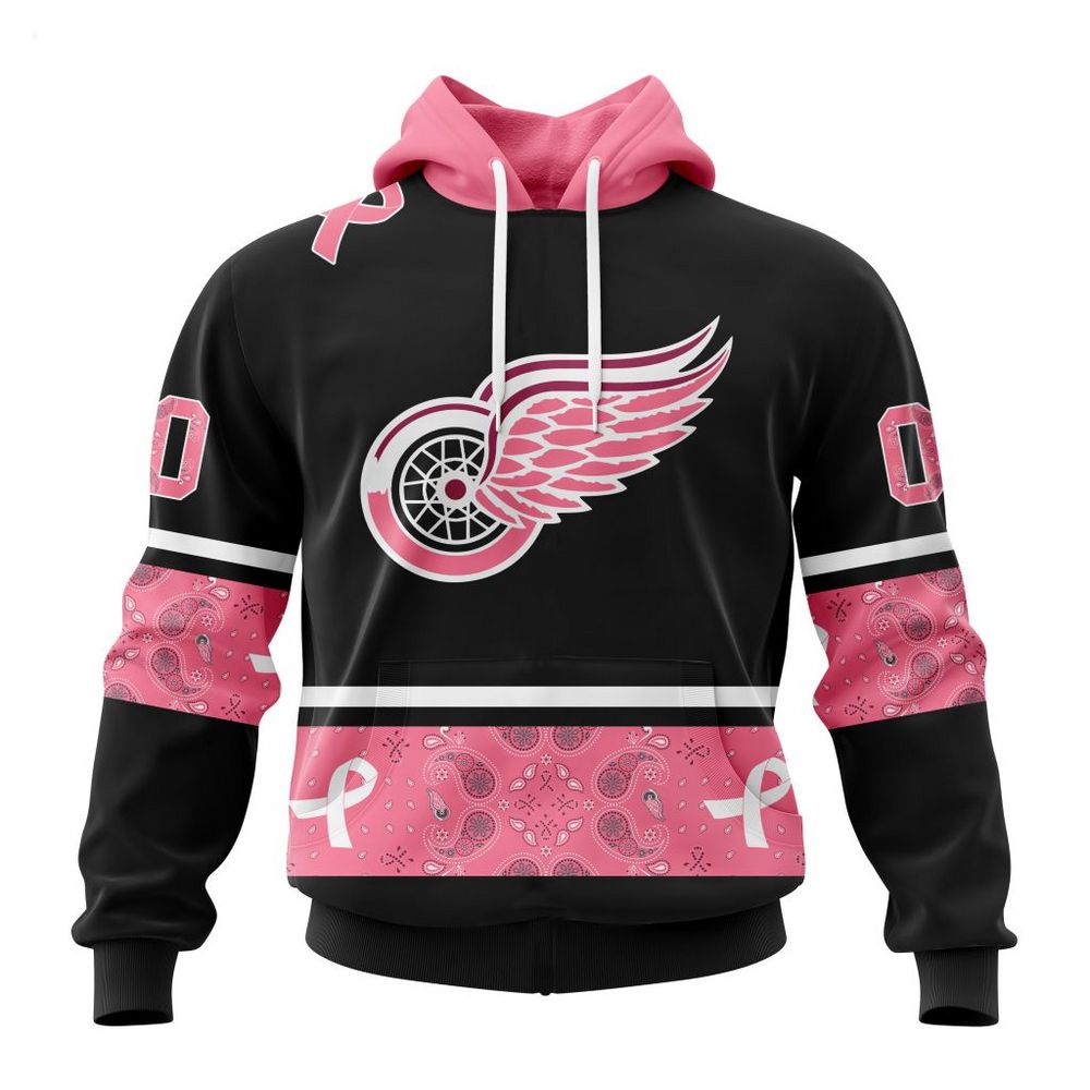 NHL Detroit Red Wings Personalized Specialized Design In Classic Style With Paisley! WE WEAR PINK BREAST CANCER Hoodie