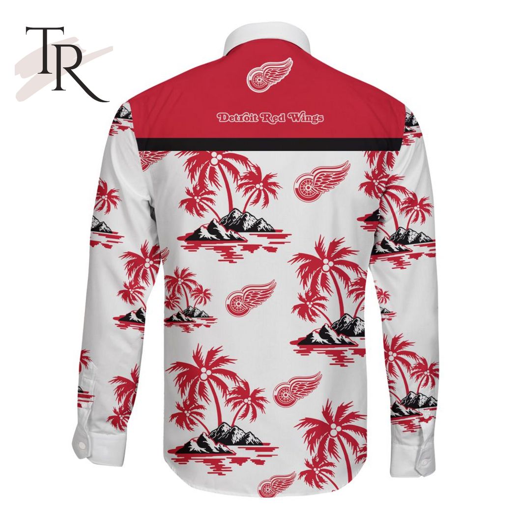 NHL Detroit Red Wings Special Hawaiian Design Long Sleeve Button Shirt