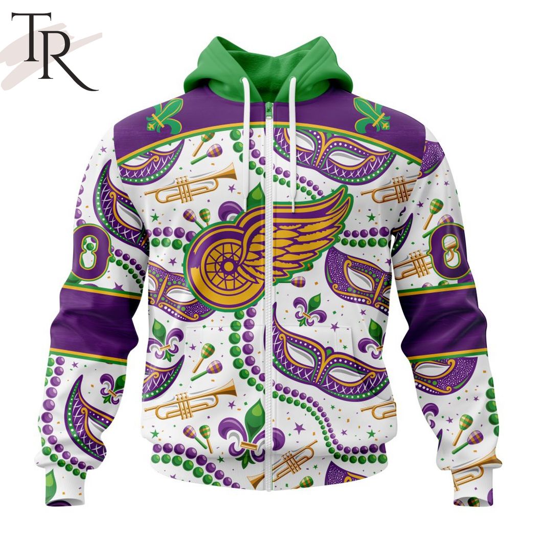 NHL Detroit Red Wings Special Mardi Gras Design Hoodie