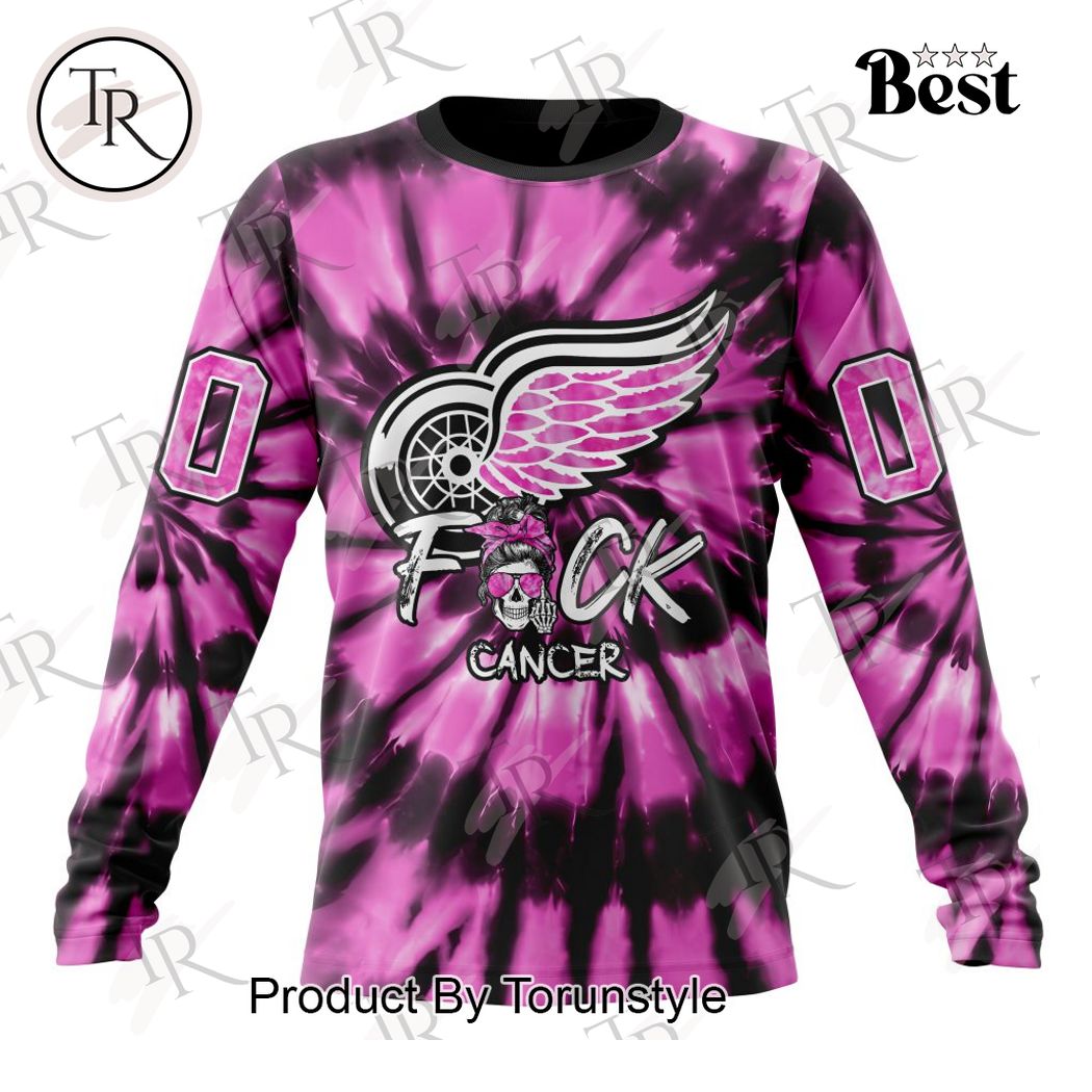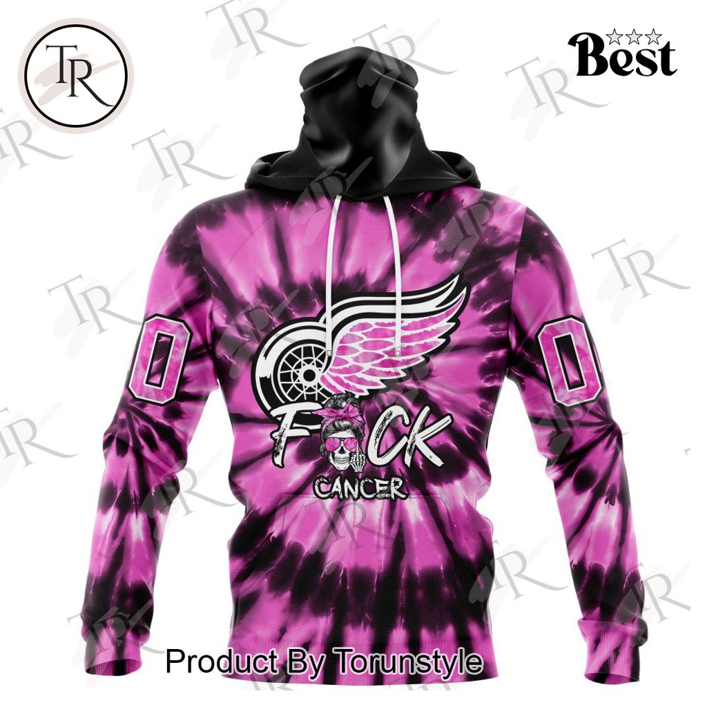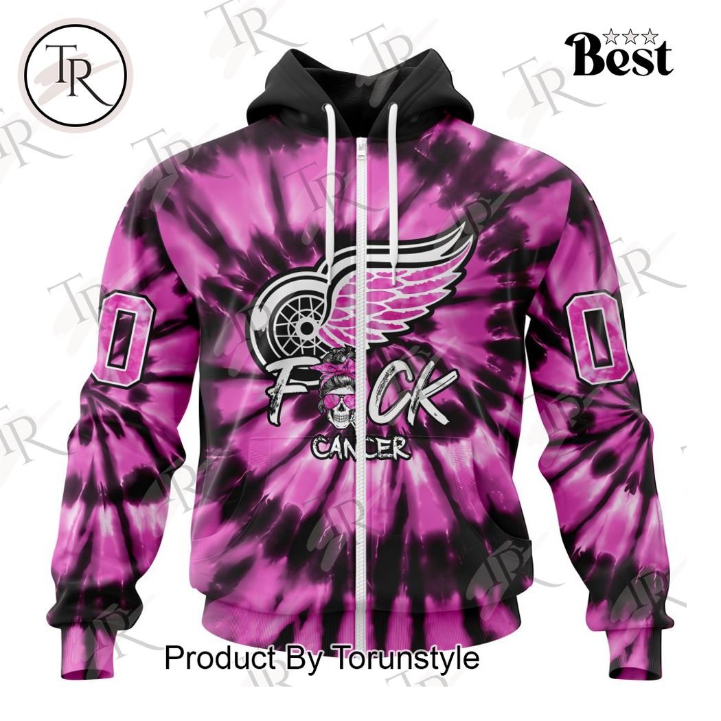NHL Detroit Red Wings Special Pink F!ck Cancer Design Hoodie