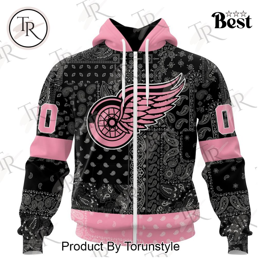NHL Detroit Red Wings Special Pink Paisley Design Hoodie