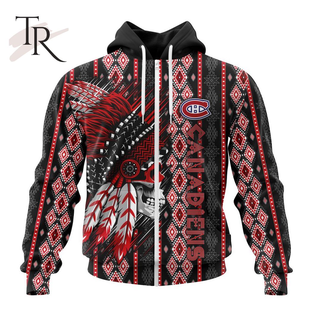 NHL Montreal Canadiens Special Skull Native Design Hoodie, Zipper Hoodie, Fleece Hoodie, Long Sleeve Shirt, T-Shirt