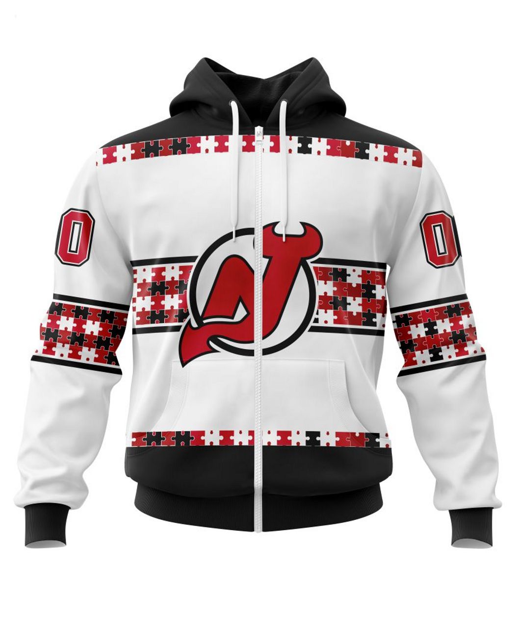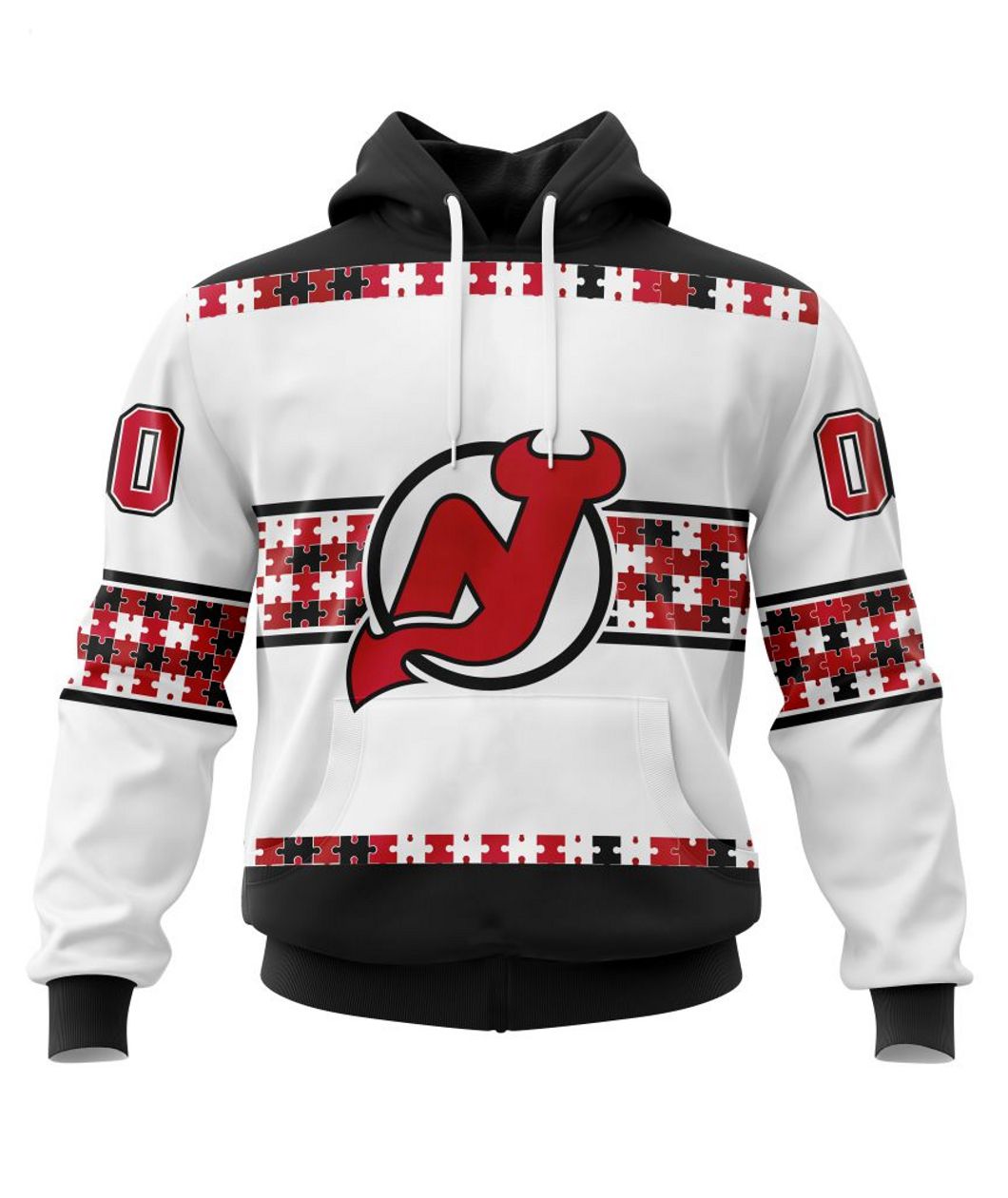 NHL New Jersey Devils Autism Awareness Custom Name And Number 3D Hoodie