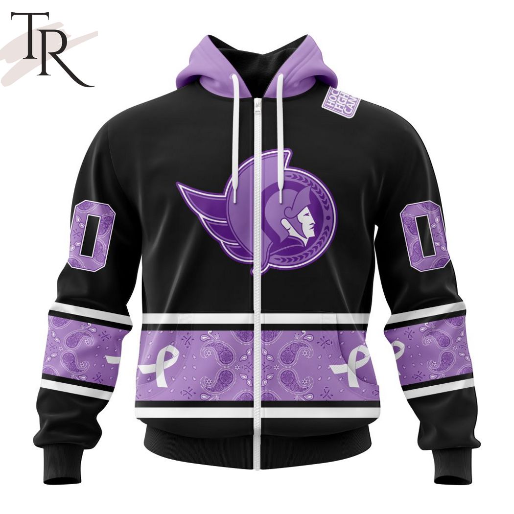 NHL Ottawa Senators Special Black And Lavender Hockey Fight Cancer Design Personalized Hoodie, Zipper Hoodie, Fleece Hoodie, Long Sleeve Shirt, T-Shirt