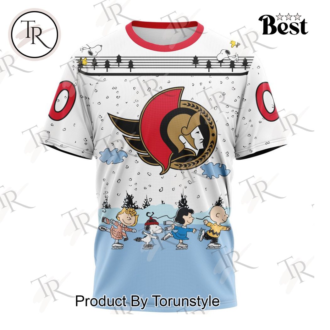 NHL Ottawa Senators Special Peanuts Ice Skating Design Hoodie, Zipper Hoodie, Fleece Hoodie, Long Sleeve Shirt, T-Shirt